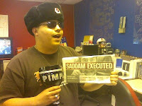 If you haven't had the pleasure, I'll tell you a little bit about him. He likes to wear Russian hats. He likes to drink from a "Pimp" cup. He was also apparently happy about the execution of Saddam (I can't tell from the picture). Daniel is not a stranger - though he IS strange. In a good way. I think. If you'd like to see for yourself, Daniel is inviting you to check out his myspace page. He has his own blog there, which will help you get to know what makes him tick (like a bomb about to explode, baby).